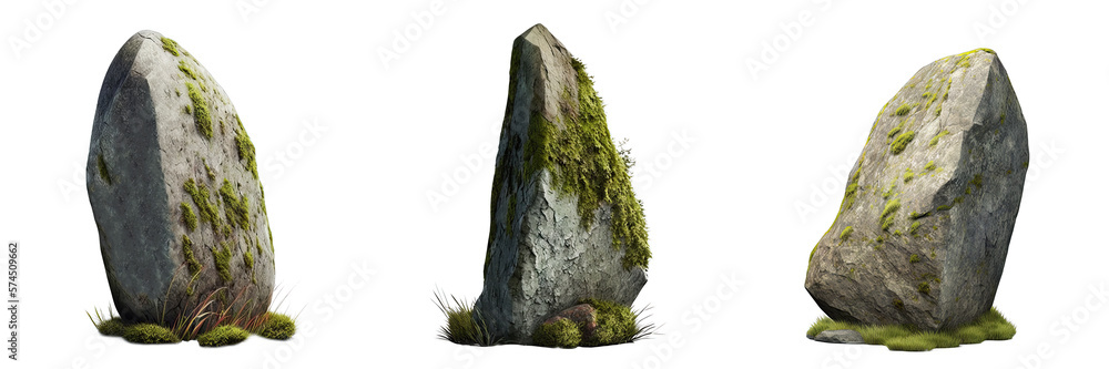 Beautiful natural tall rock with moss, transparent background, 3d rendering, can be used for natural garden yard decoration, generative ai. #574509662