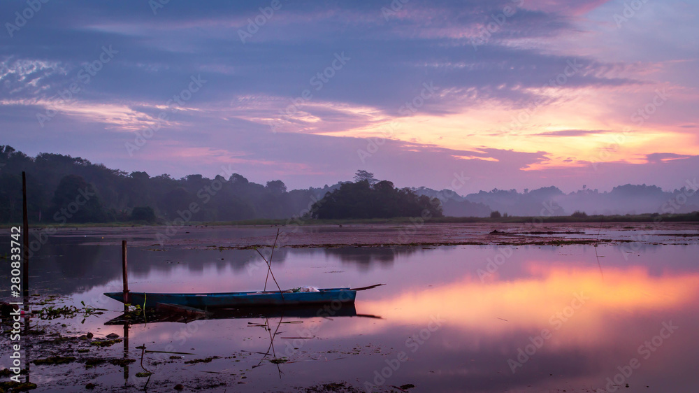 beautiful panorama of sunrise at Benanga Reservoir, Samarinda, East Kalimantan, Indonesia #280833742