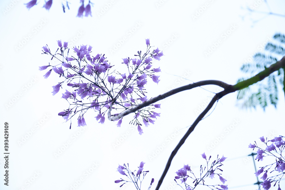 Beautiful purple flowers of the jacaranda mimosifolia tree, in spring #393429109