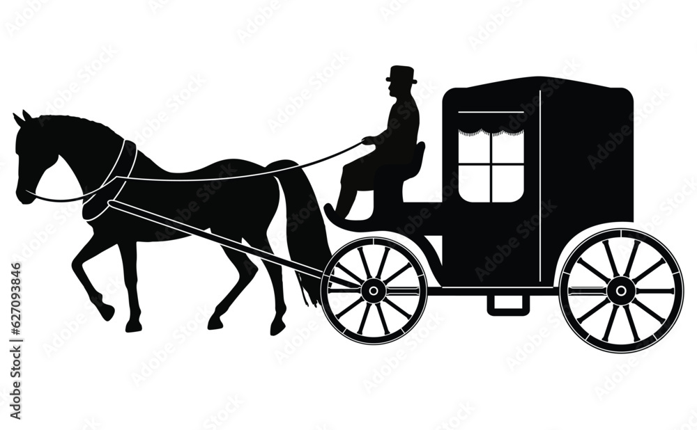 Beautiful vintage carriage with horse, vector illustration #627093846