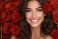 Beautiful young model, woman with perfect skin and snow white smile, long hair surrounded by bright red roses. #1958017611