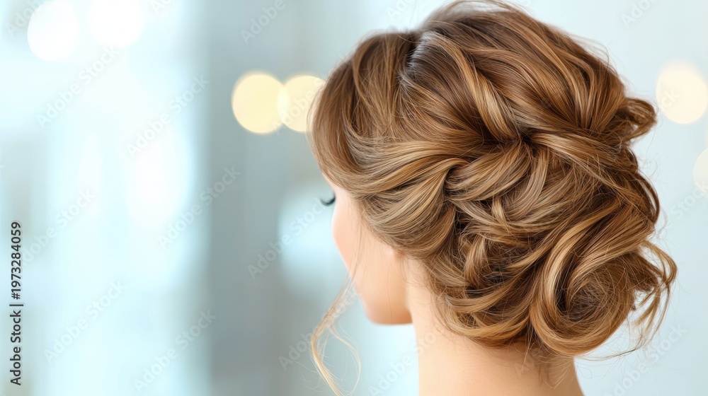 Beauty expert hairstylist creating a stunning updo for a special event in a chic salon. #1973284059