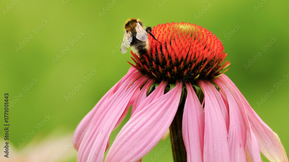 Bee sit on the echinacea flower. Pollination of a flower close-up. #1771001443