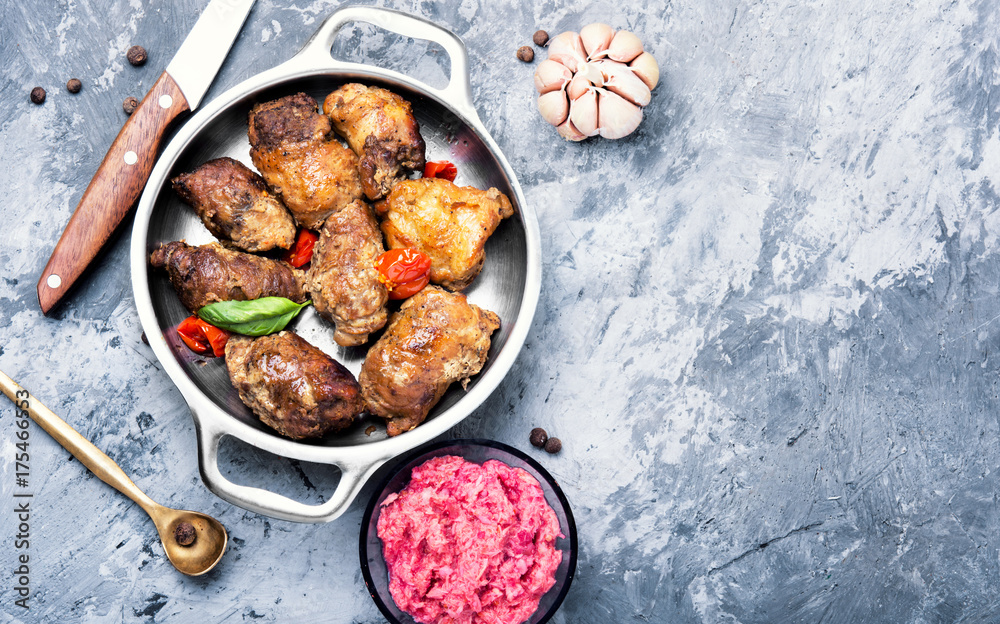 beef roulades in a metal bowl #175466553