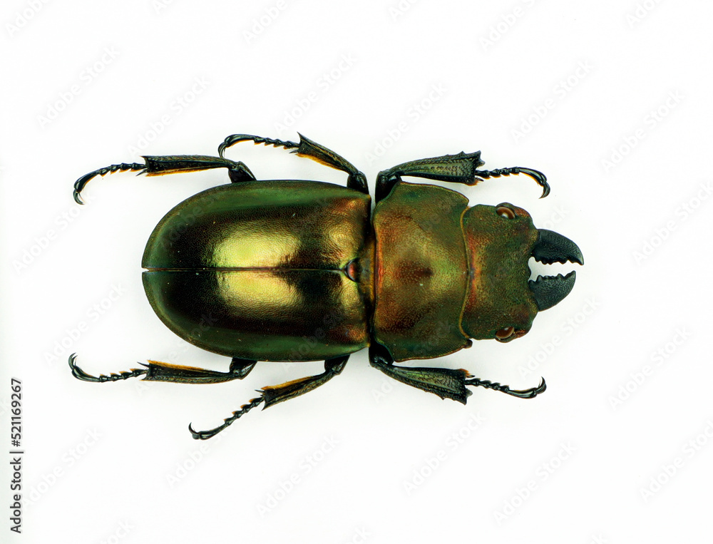 Beetle isolated on white. Giant black stag beetle Odontolabis kazuhisai macro. Collection beetle, lucanidae, coleoptera, insects, entomology #521169267
