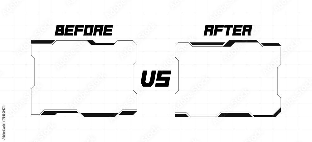 Before vs After headline with empty futuristic HUD frames for comparison. Cyber background with grid for conducting challenges, competitions and comparisons. Trendy vector illustration #1754309874