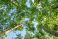 Below photo of poplar trees and recycle icon design on sky as a symbol of clean air quality. Concept of reducing carbon emissions and air pollution. #506290743