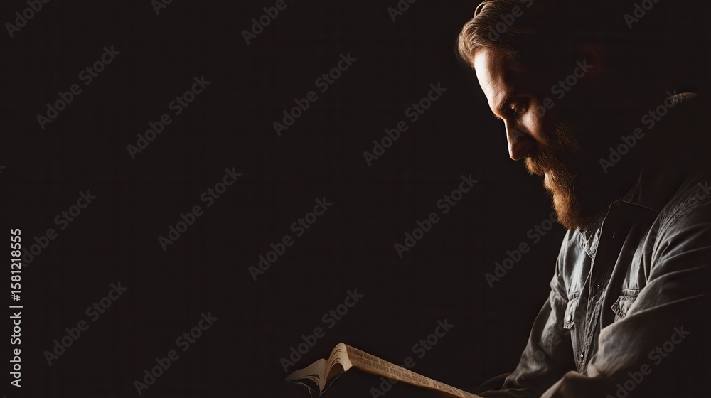 Bible Study Banner with Copyspace, Man Reading Bible #1581218555