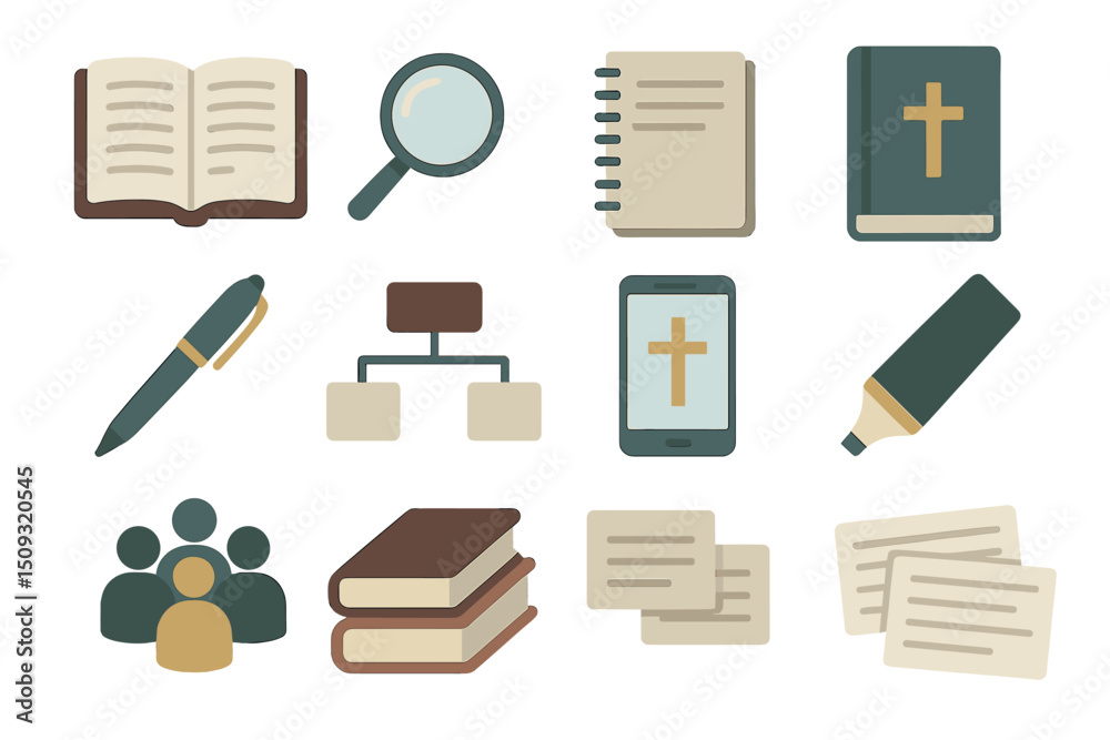 Bible study tools - books, notebook, magnifying glass, and digital resources #1509320545