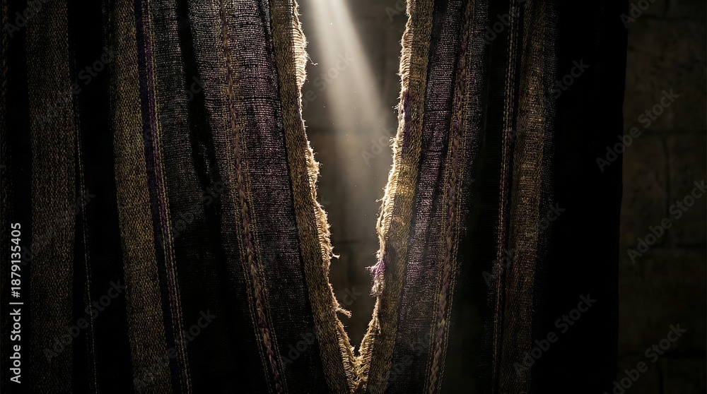 Biblical Scene of Temple Veil Torn in Two with Heavenly Light on Good Friday #1879135405