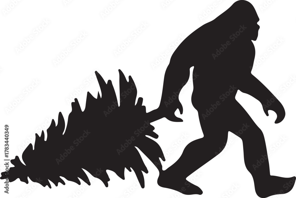 Bigfoot carrying a christmas tree, vector illustration #1783440349