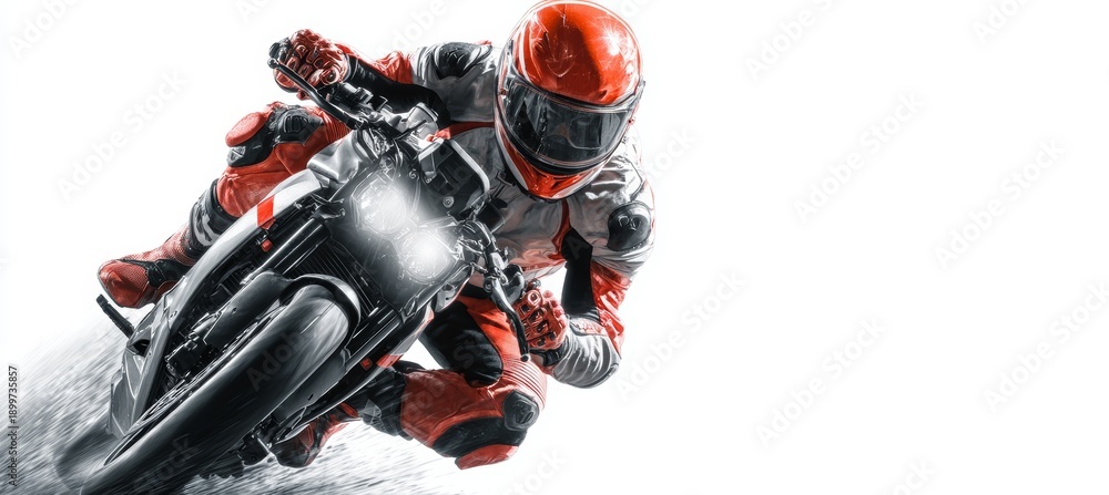 Biker on motocross on white background. Generative AI technology. #1899735857