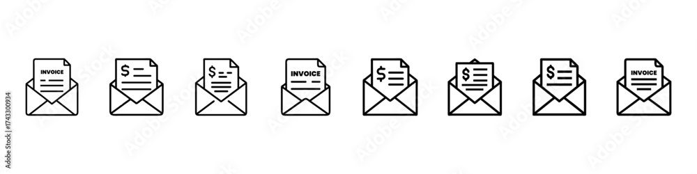 Billing and Invoice Email Line Icons, Invoice Email Line Icons Vector Set – Billing Statement, Payment Due Notification, e-Invoice, Payment Request, Online Billing, Finance and Accounting Symbols #1743300934