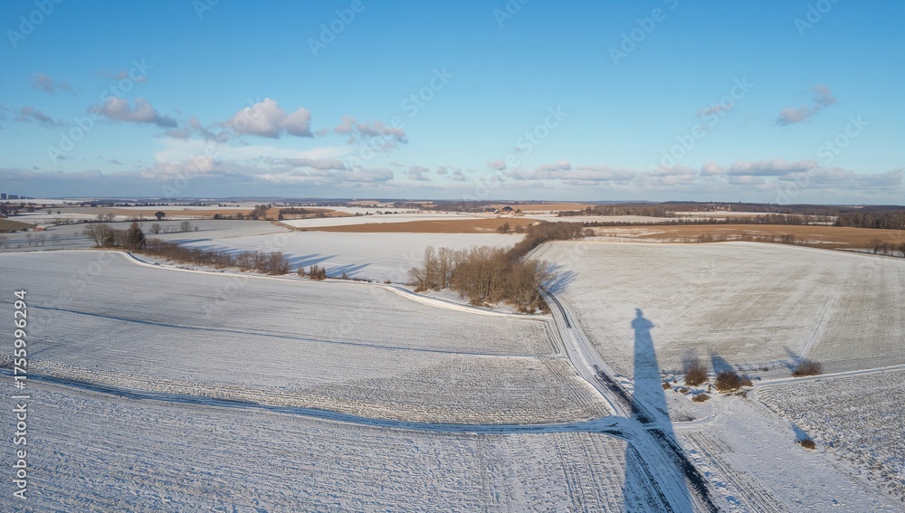 Bird's-Eye Perspective of Frost-Covered Farmland. Seasonal Agricultural Scenery. #1755996294