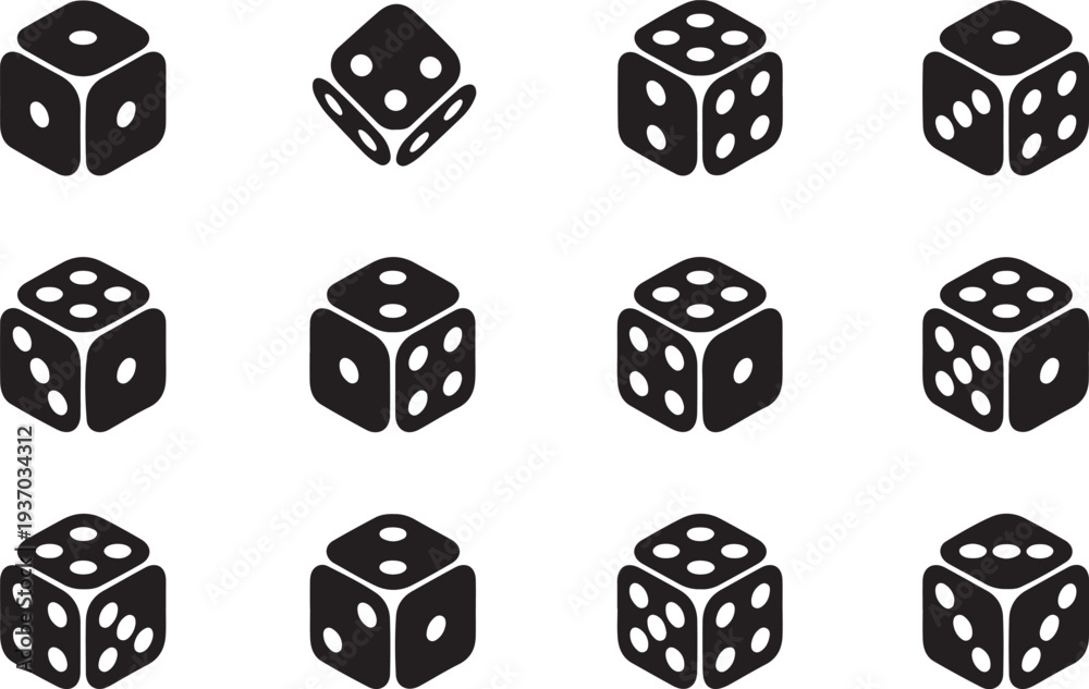 Black and white dice with various numbers on their faces arranged in a grid pattern #1937034312