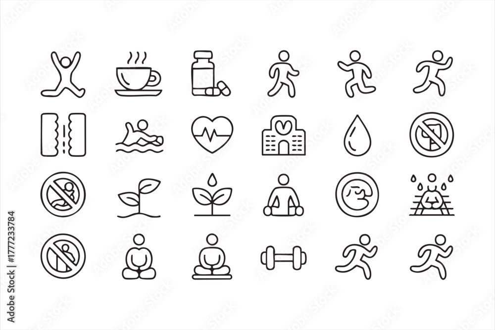 Black and white fitness and wellness line icons for exercise and health design #1777233784