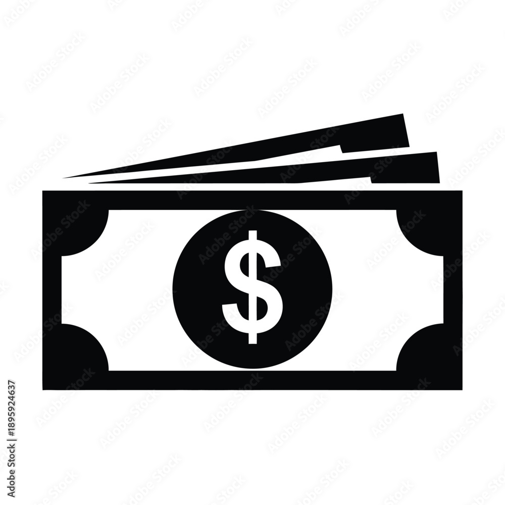 Black and white icon of a stack of dollar bills with a dollar sign #1895924637