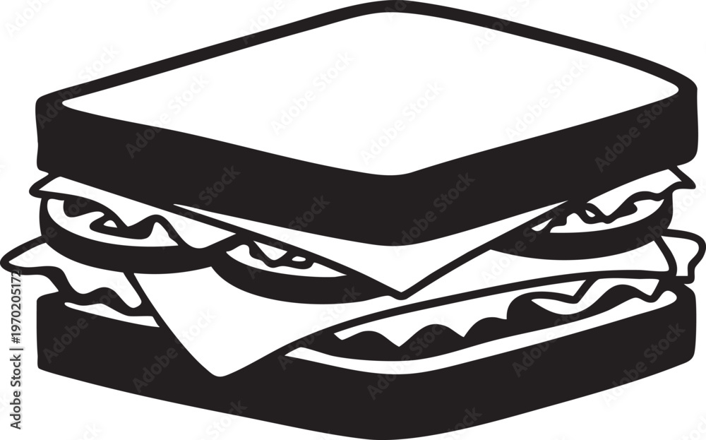 Black and white sandwich icon, food illustration, vector graphic, sandwich symbol #1970205172