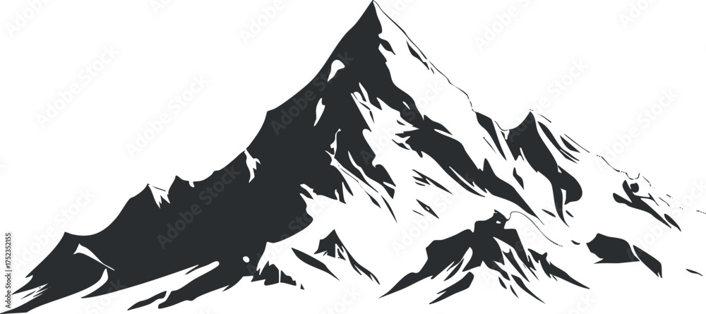 Black and white silhouette of a mountain peak, showcasing a minimalist and abstract design. #1752352155