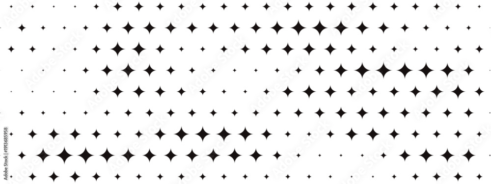 Black and white star pattern background. Diamond sparkle shapes scattered across vector grid. Abstract retro Y2K geometric design. Modern minimalist texture for graphic templates and overlays. #1913685958