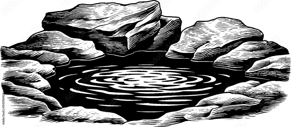 Black and white tide pool with ripples and rocks for nature and design themes #1543900424