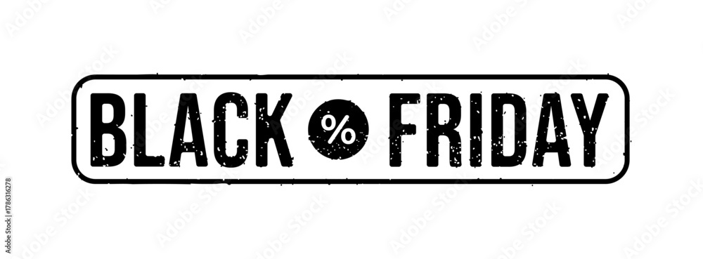 Black Friday sale banner collection. Vector ads illustration. Black text in frame with discount symbol and grunge texture on white background. Design element for commercial advertisement campaign #1786316278