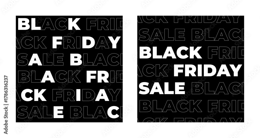 Black Friday sale banner collection. Vector ads illustration set. White text with contour on background. Design element for commercial advertisement campaign #1786316237