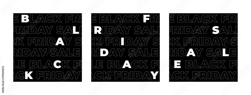 Black Friday sale banner collection. Vector ads illustration set. White text with contour on background. Design element for commercial advertisement campaign #1786316272