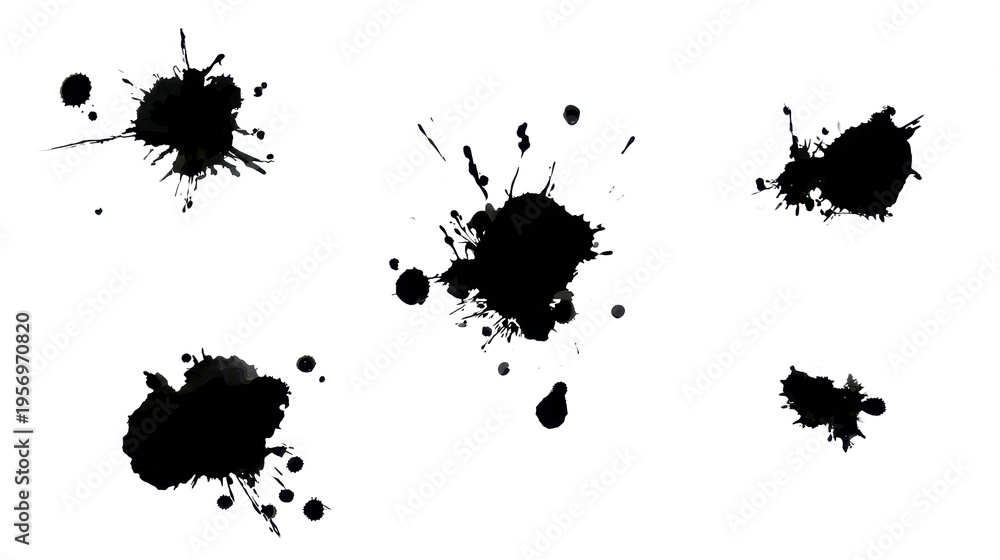 Black ink blots and messy paint splatters creating a grunge border, abstract liquid drops, and artistic graphic elements with a transparent background #1956970820