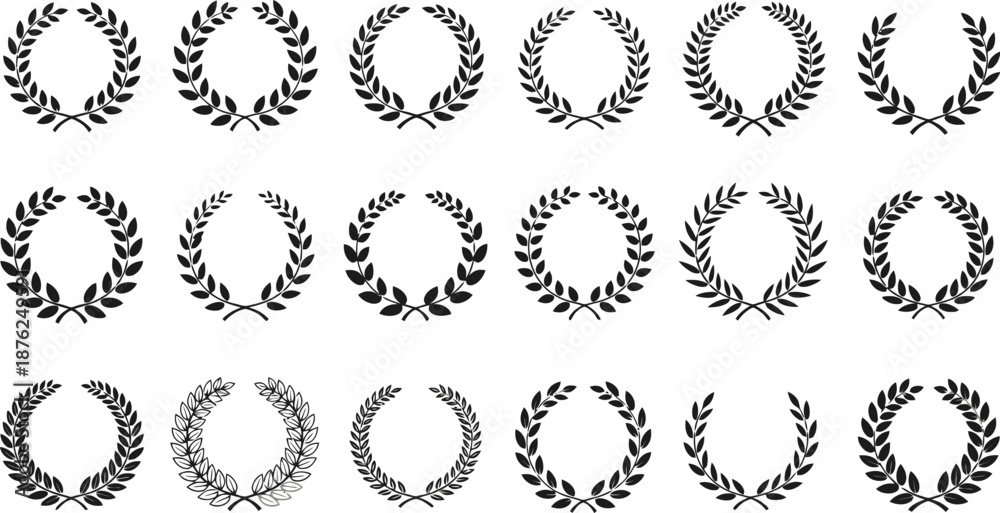 Black laurel wreath with Film Awards design elements. Premium insignia, traditional victory symbol on white background. #1876249591