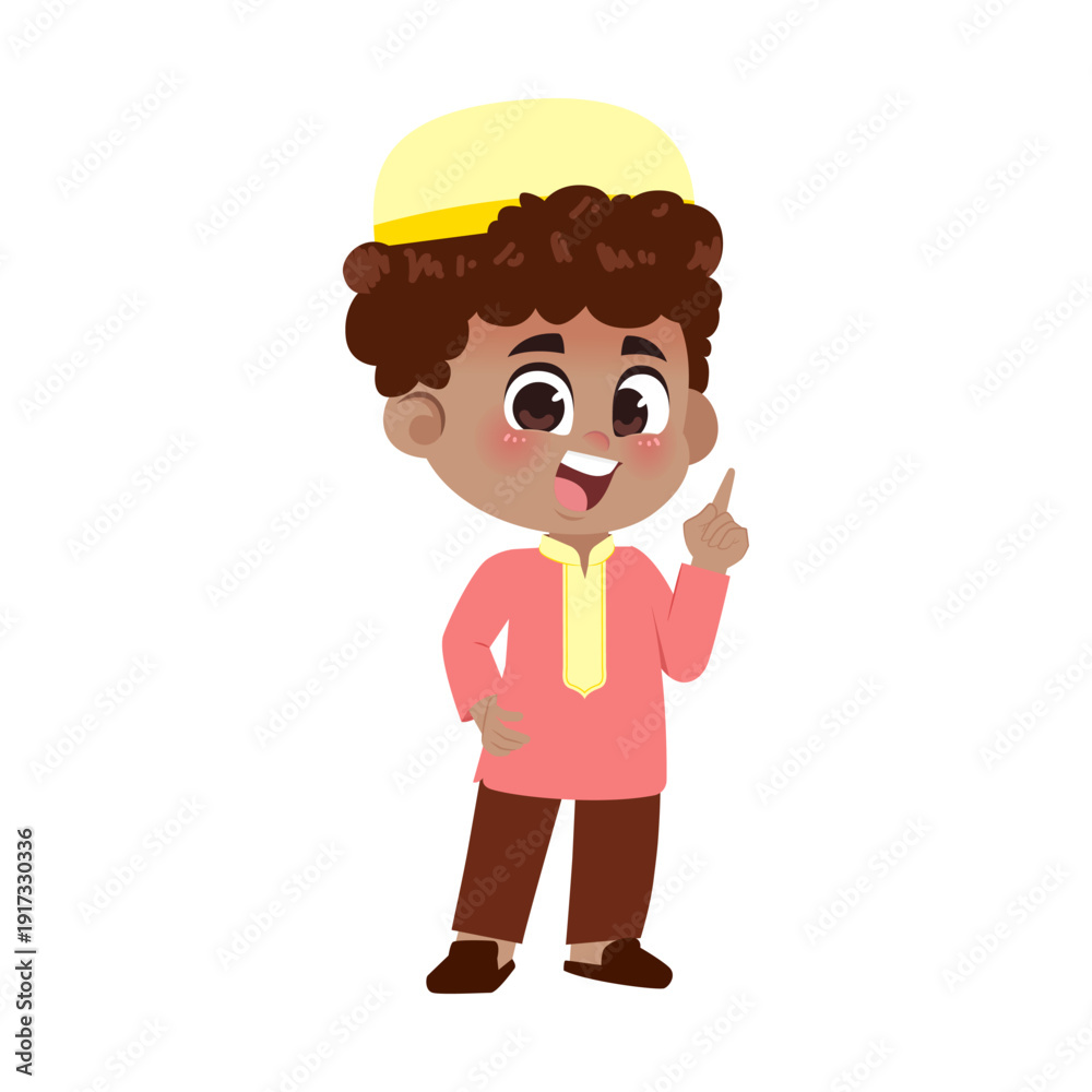 Black Muslim Boy Red Clothes Pointing Up Pose #1917330336