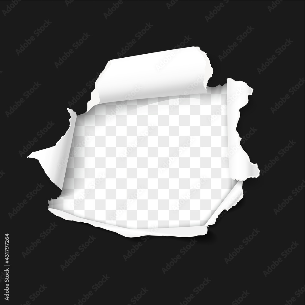 Black paper hole realistic 3D vector template. Concept for Black Friday sale and promo banner. Torn paper. #431797264