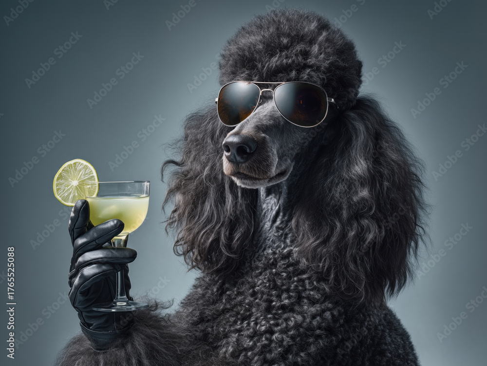 Black Poodle Dog in Aviator Sunglasses with Green Cocktail #1765525088