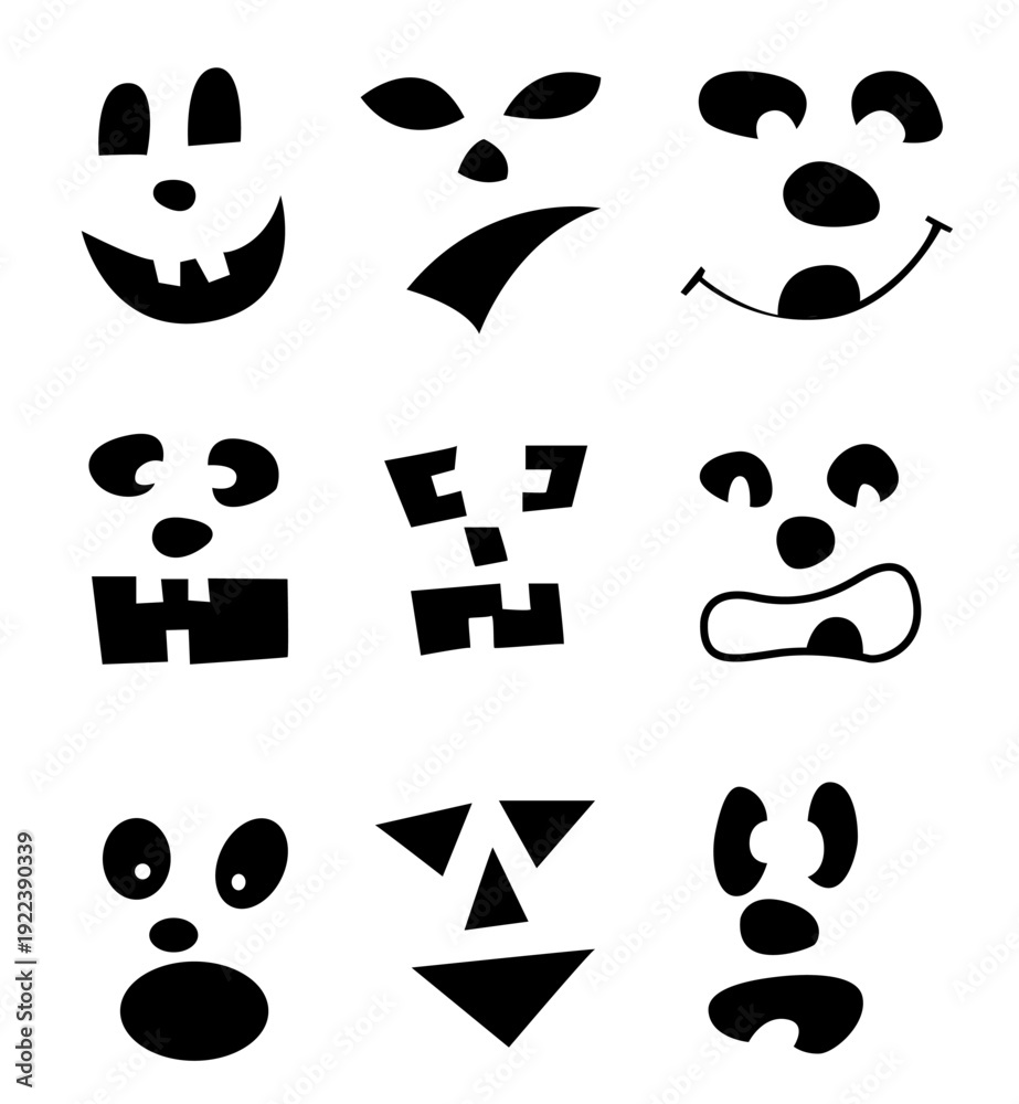 Black silhouette cartoon face set with different funny expressions. #1922390339