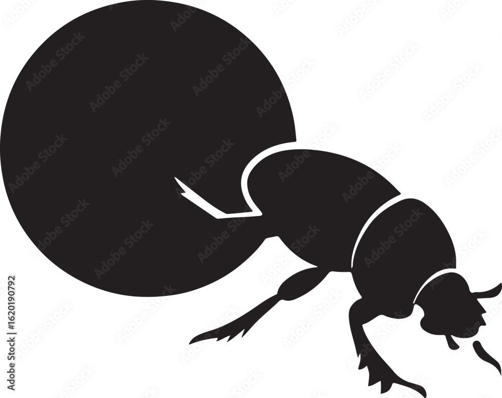 Black silhouette of a dung beetle pushing a large ball insect 1 #1620190792