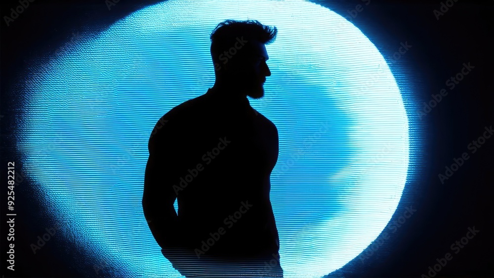 black silhouette of a man on a glowing neon background. #925482212