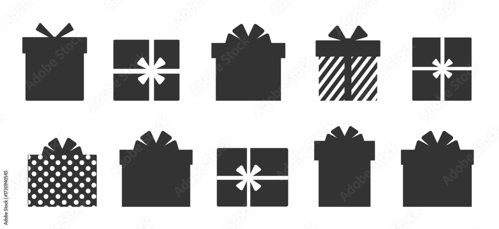 Black silhouettes of gift boxes on a white background. Vector illustration #1730940545