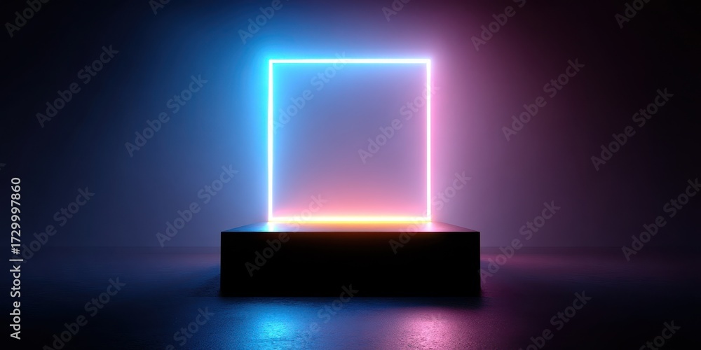 black square podium in dark room with neon lights. black square podium for product advertising You said: isolated on ultra quality image 8k resilution white blue neon pastel background #1729997860