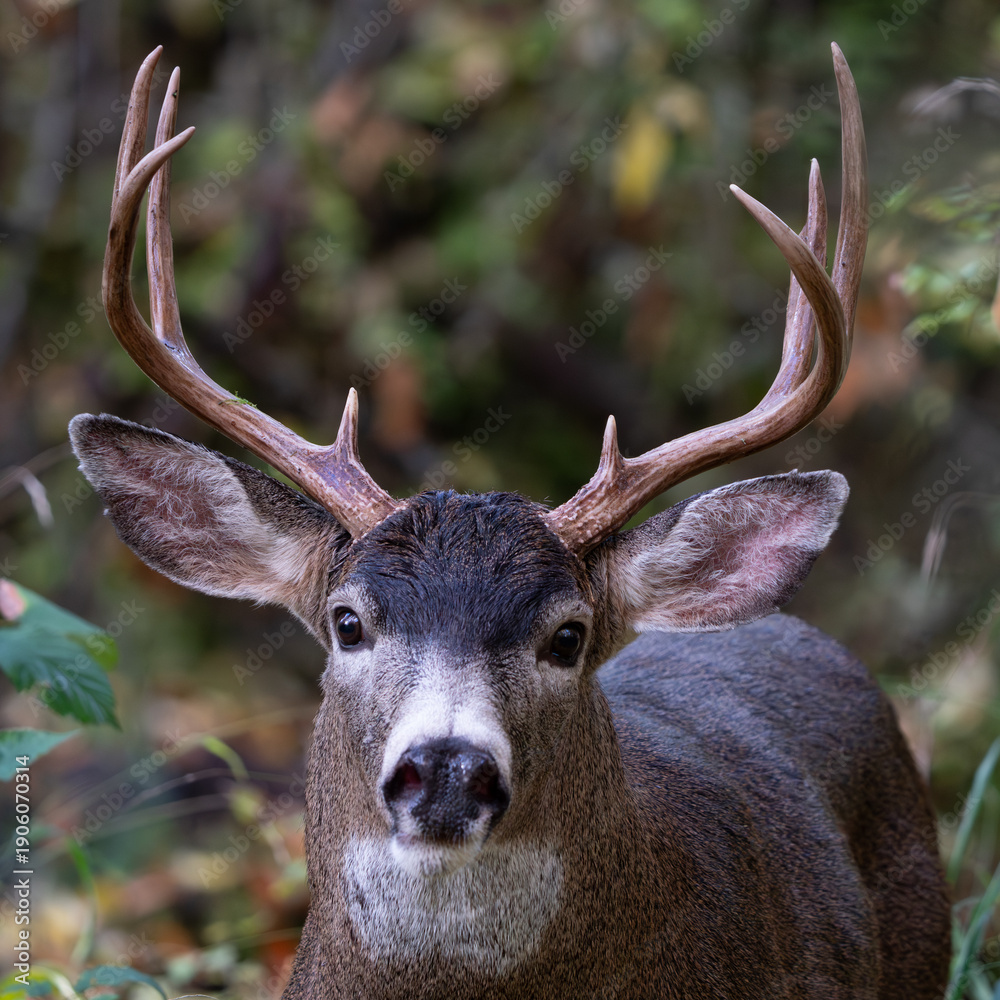 Black-tailed Buck(Odocoileus hemionus) during the rut in Western Oregon. #1906070314