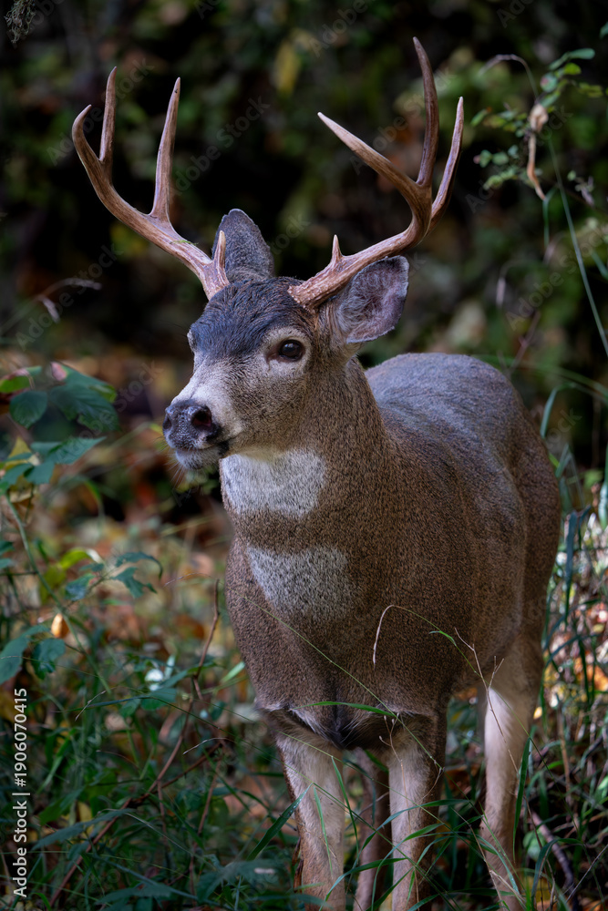 Black-tailed Buck(Odocoileus hemionus) during the rut in Western Oregon. #1906070415
