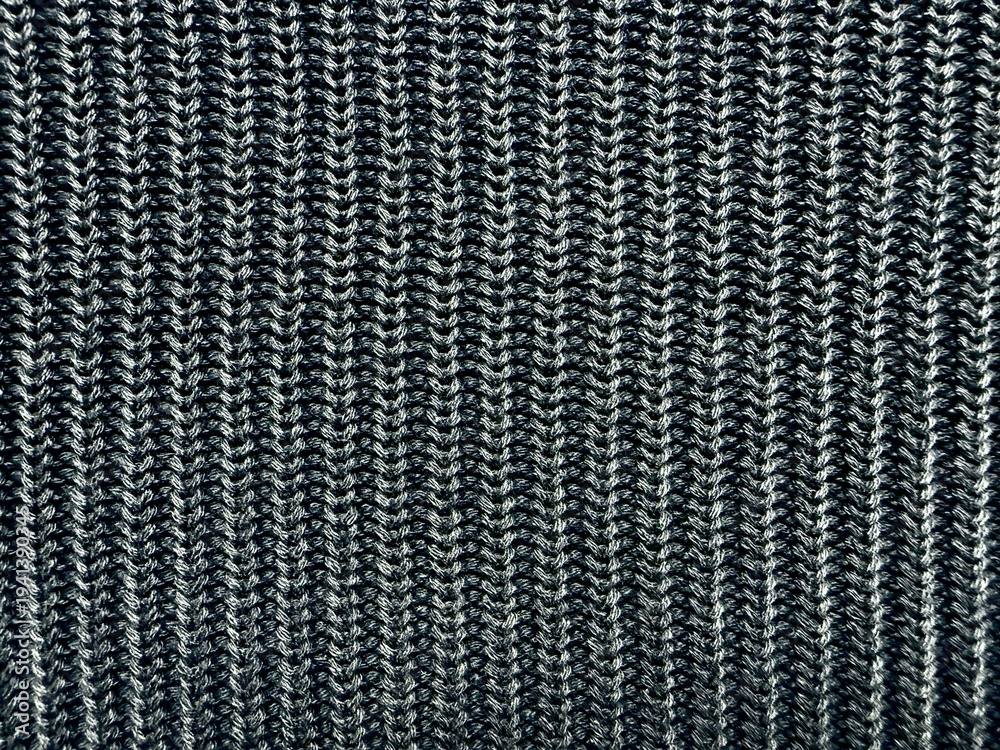black white ribbed knit fabric macro closeup reveals intricate vertical zigzag yarn texture cozy monochrome pattern #1941390345