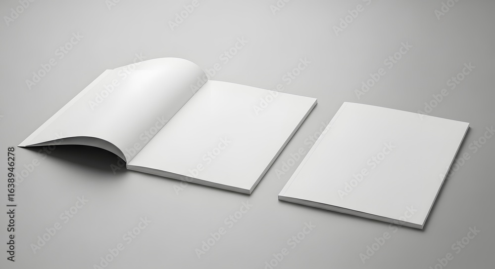 Blank Canvas: Open and Closed Booklets on Grey Background (AI Generated) #1638946278