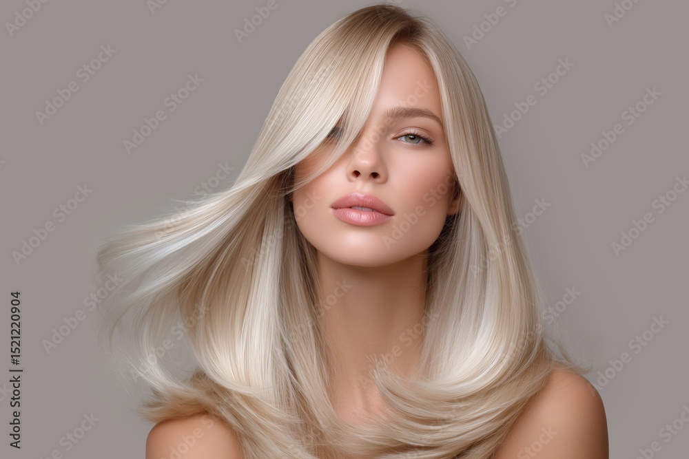 Blonde woman with straight flowing hair and medium length hairstyle #1521220904