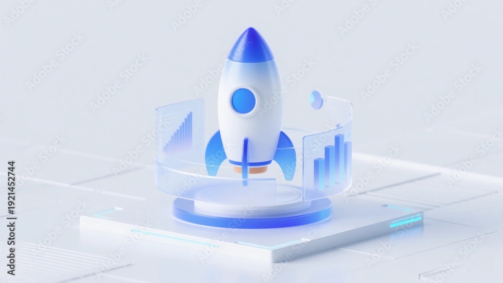 Blue and white gradient visualized windshield texture futuristic rocket column chart UI design #1921452744