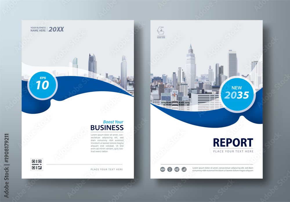 Blue annual report brochure template design, corporate flyer and business presentation layout in A4 size. #1908179211