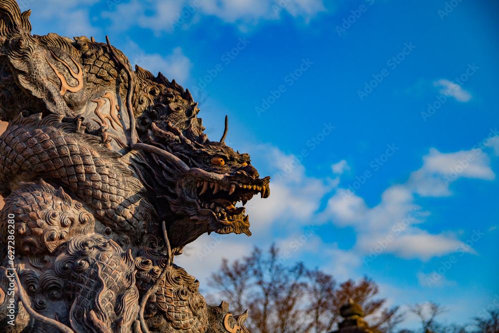 Blue Dragon of Kiyomizu-dera or Kiyomizu Temple in Kyoto, Azure Dragon, Shi Yun Blue, Seiryu, Japanese art stone carved sculpture #627286280