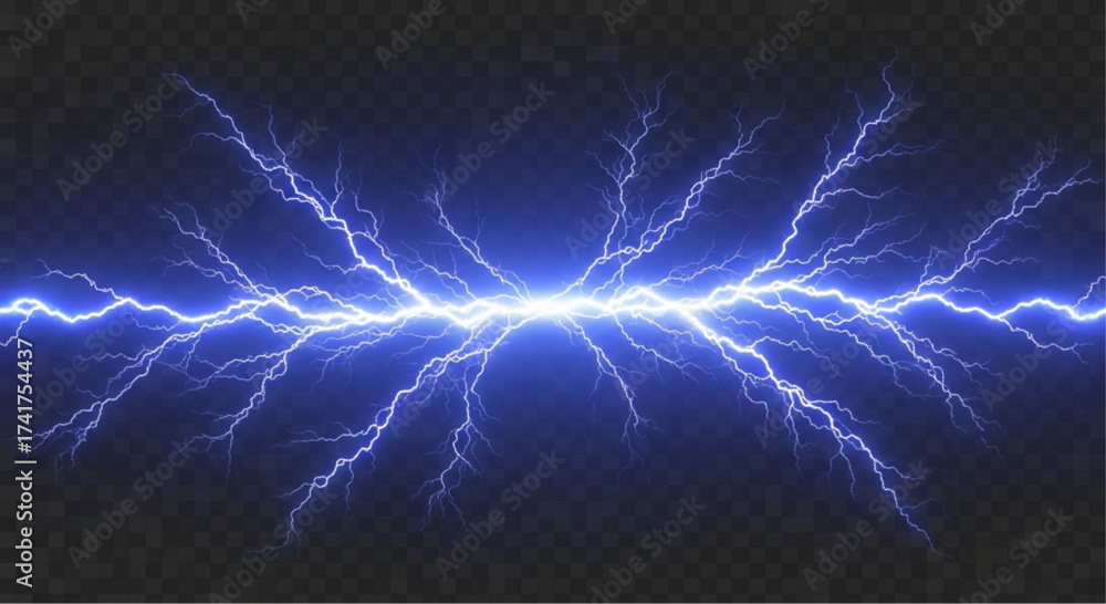 blue lightning bolts illuminates against a dark, dramatic backdrop, vector png illustration #1741754437