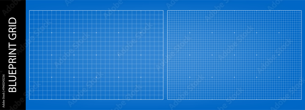 Blue paper overlay with digital pattern of squares and dots. Drawing bg grid and scan print graph, vector HUD element. Architectural matte effect of millimeter data chart, technical builder blueprint #1960243236