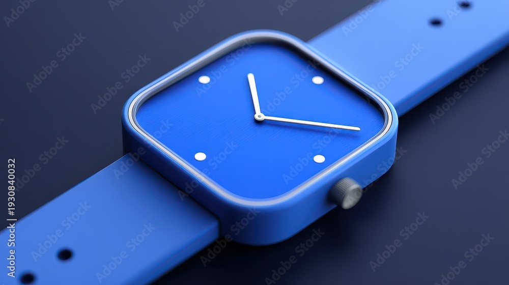 Blue smartwatch with square face and minimalist analog dial on strap #1930840032