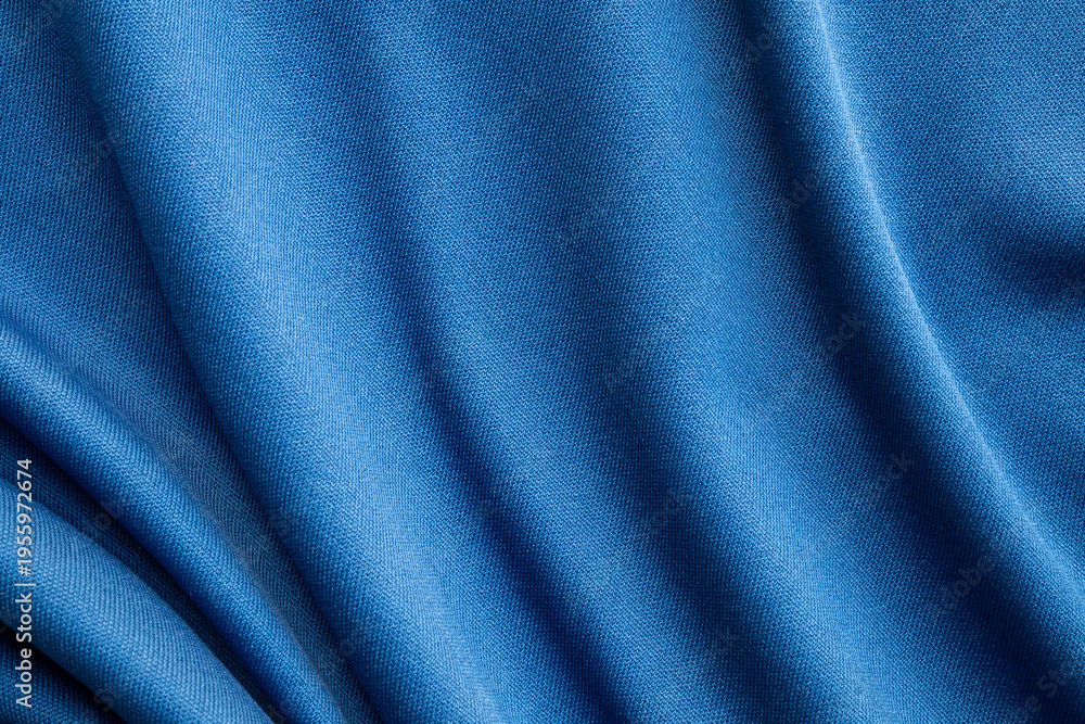 Blue sports clothing fabric football shirt jersey texture close up #1955972674